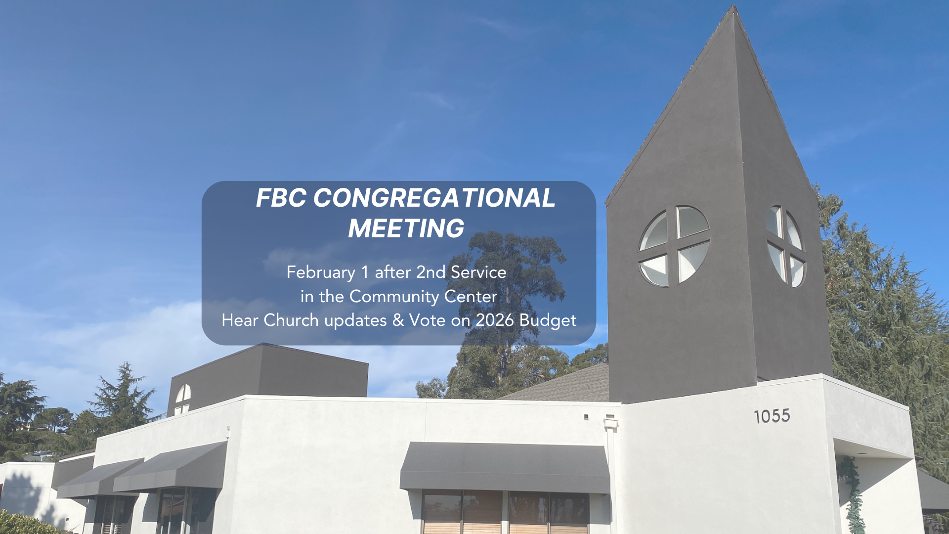 Mark your calendars! Join us Sunday, February 1, right after Second Service in the FBC Community Center for our All-Church Congregational Meeting. We’ll share important church updates, members will have the opportunity to vote on the 2026 budget, and we’ll enjoy some meaningful time together as a church family.