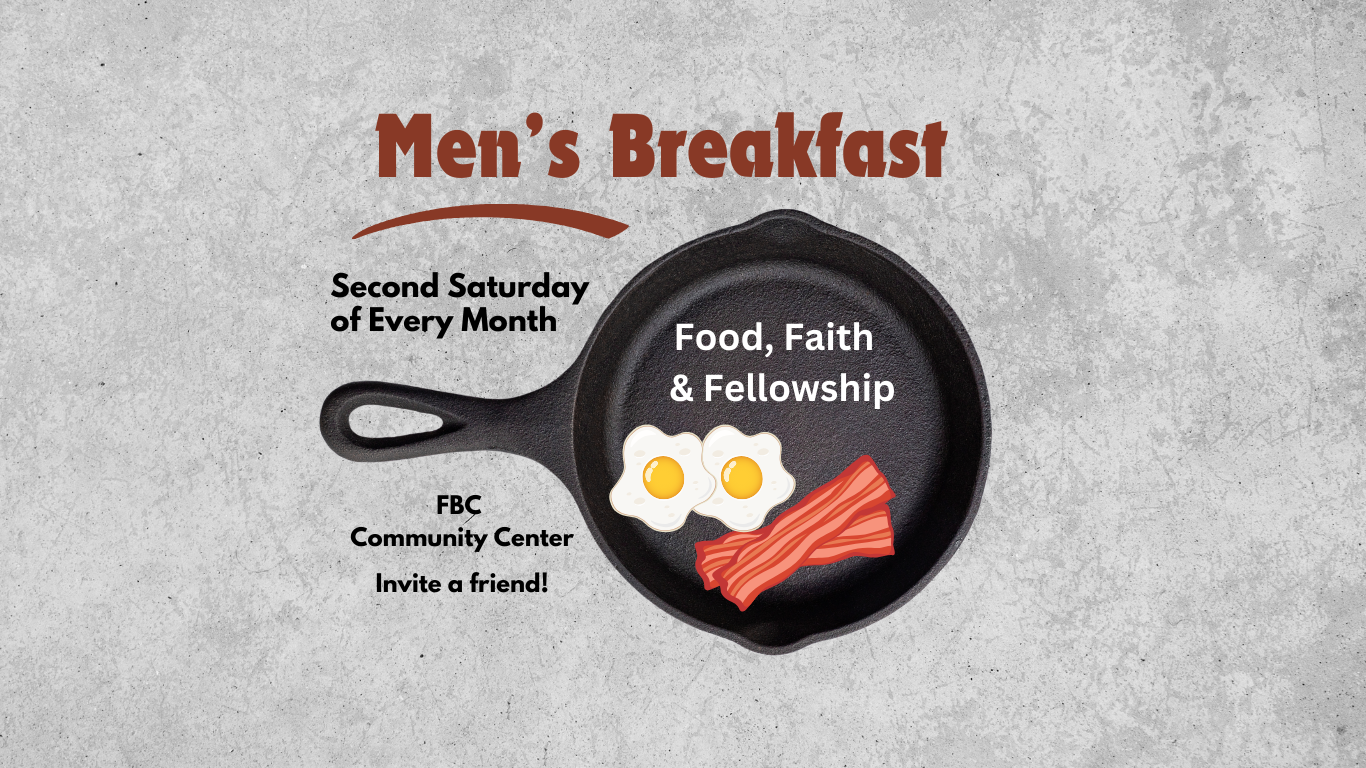 Men’s Breakfast will meet on Saturday, January 10 from 8–10 AM in the FBC Community Room.