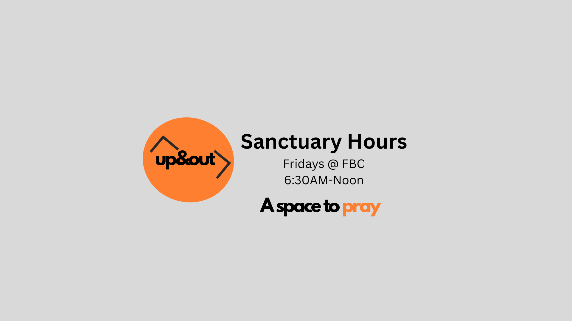 As part of our Up and Out initiative, the FBC sanctuary will be open on Fridays from 8 am - 12 pm. This is a set-apart time to look up-seeking God in prayer, reflection, and rest in His presence. Whether for a few minutes or a few hours, come find a quiet space to draw near to Him.